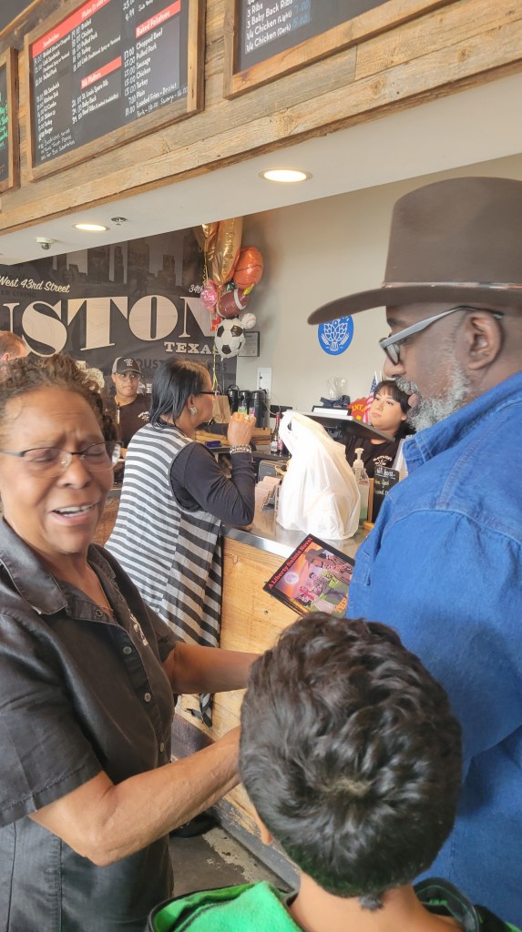 After a moment Momma Gatlin herself came by our table and talked to us for a while, and she was gracious, kind, and we felt like part of her family before we left! Of course, I had to give her a copy of my book, and I hope she enjoyed it! I promised her whenever I return to Houston, which I will, several times in 2024 in fact (stay tuned!), that I would stop by. This is a promise I intend to keep!